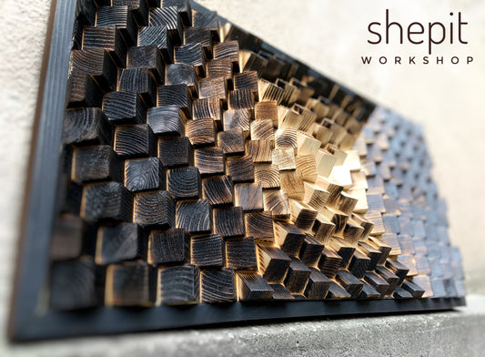 Shou Sugi Ban Yakisugi - Acoustic Panel - Sound Diffuser - Wood Wall Art - 3D Geometric