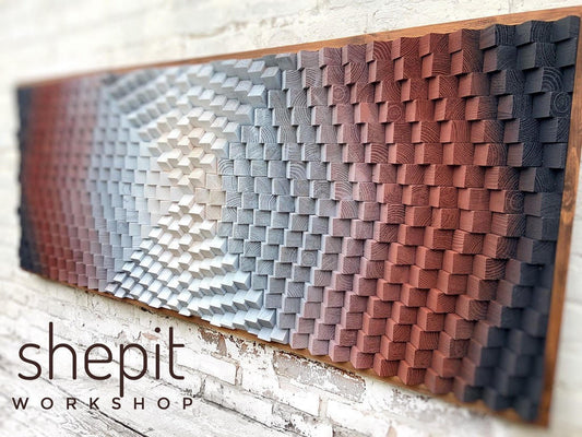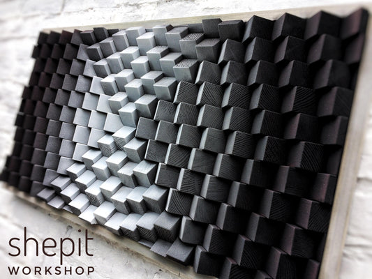 3D Wood Wall Art - Acoustic Panel Sound Diffuser - Black Brown Gray White