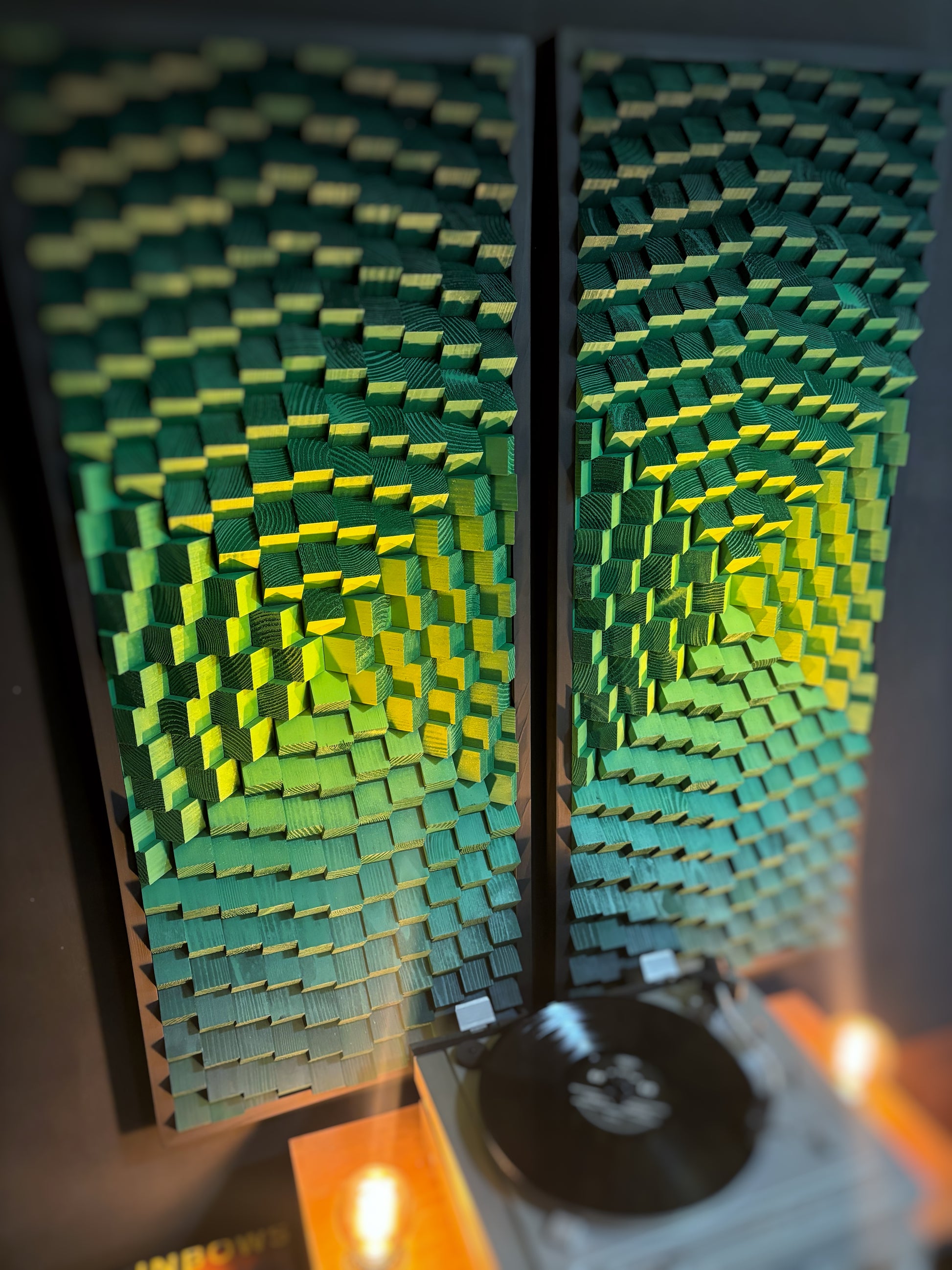 Set of 2 Acoustic Panels - Wood Wall Art - 3D - Music Studio Decor - Sound Diffuser - Home Cinema