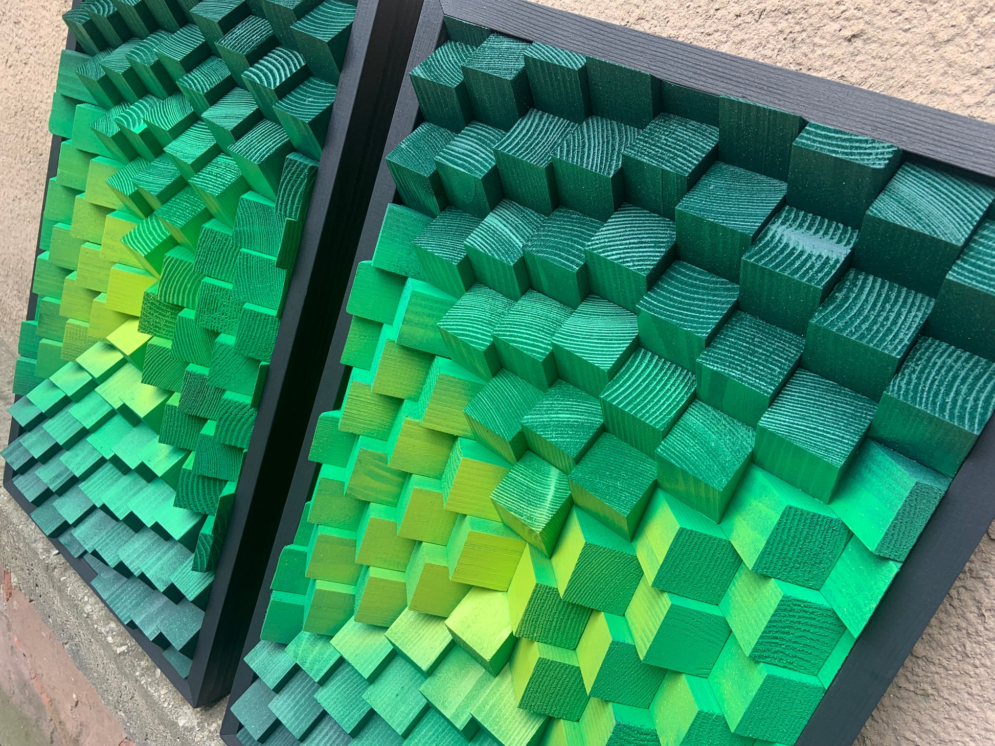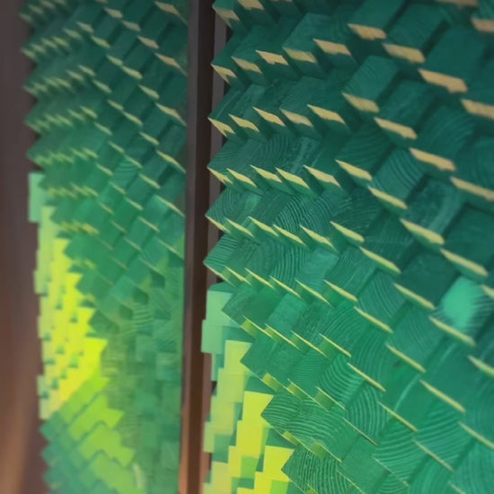 This pieces are made from pine wood and colored in Emerald Green, Green and Chartreuse Green.