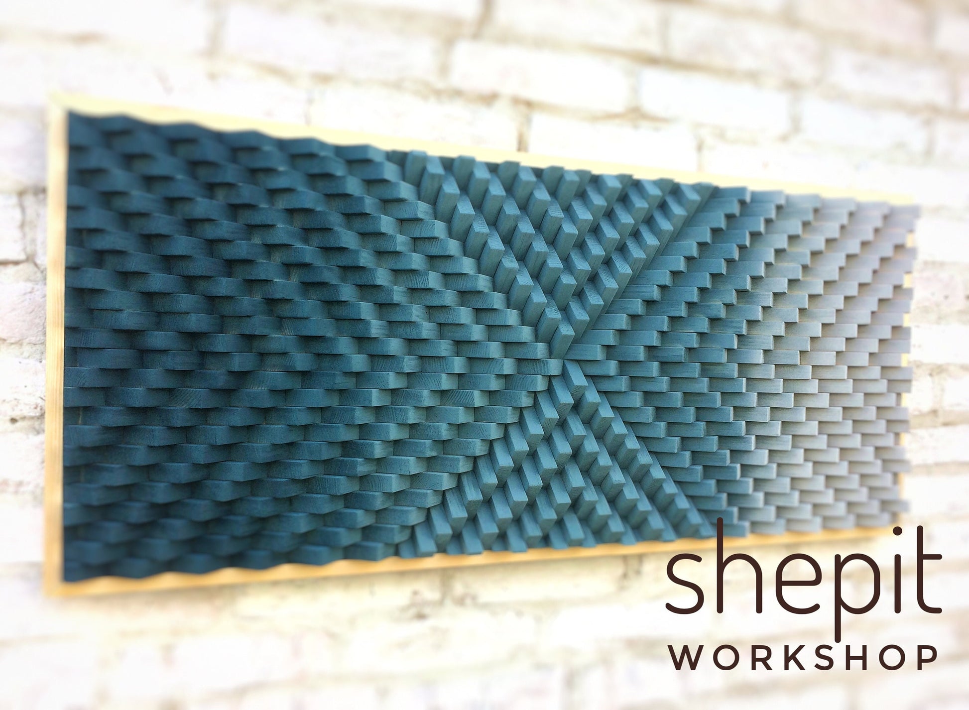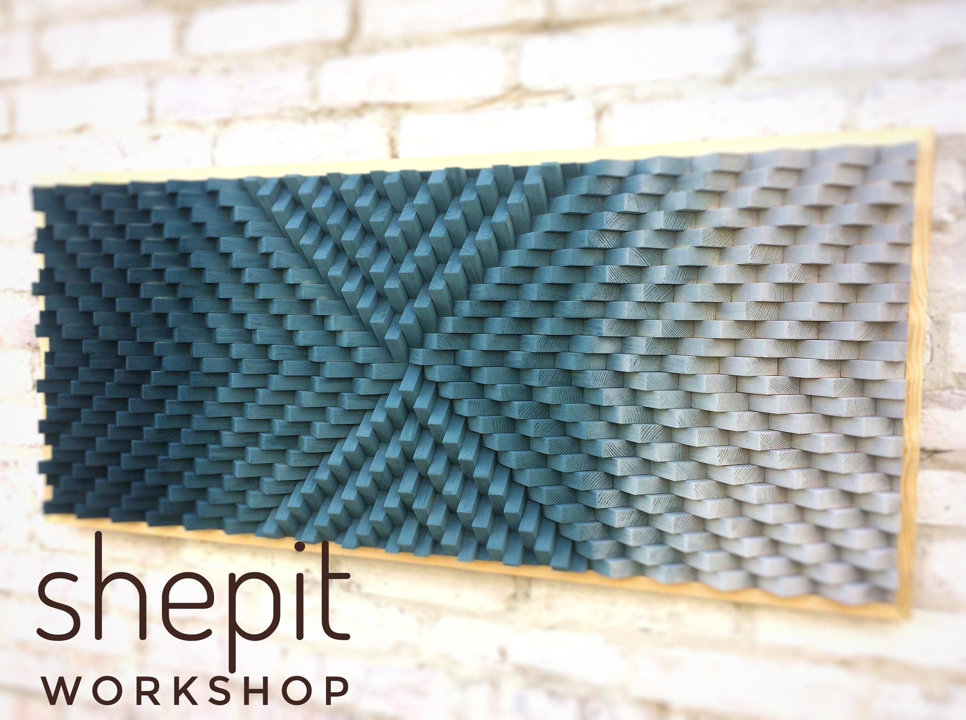 Large Wood Wall Art - Navy Blue Gray Home Office Wall Decor - 3D - Sound Diffuser - Acoustic Panel