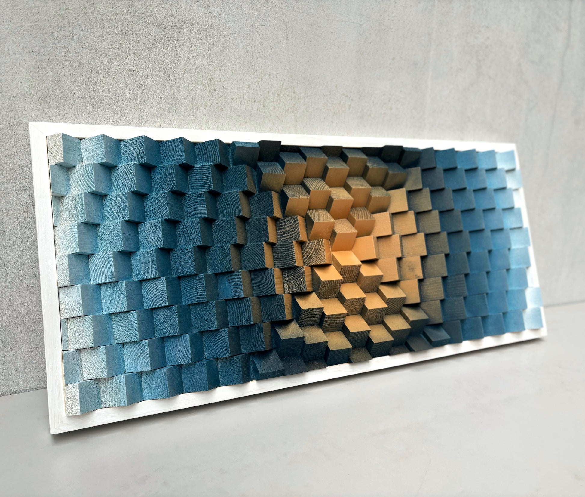 Wood Wall Art | Navy Blue Beige White Parametric Artwork | Music Room | Sound Diffuser | Acoustic Panel